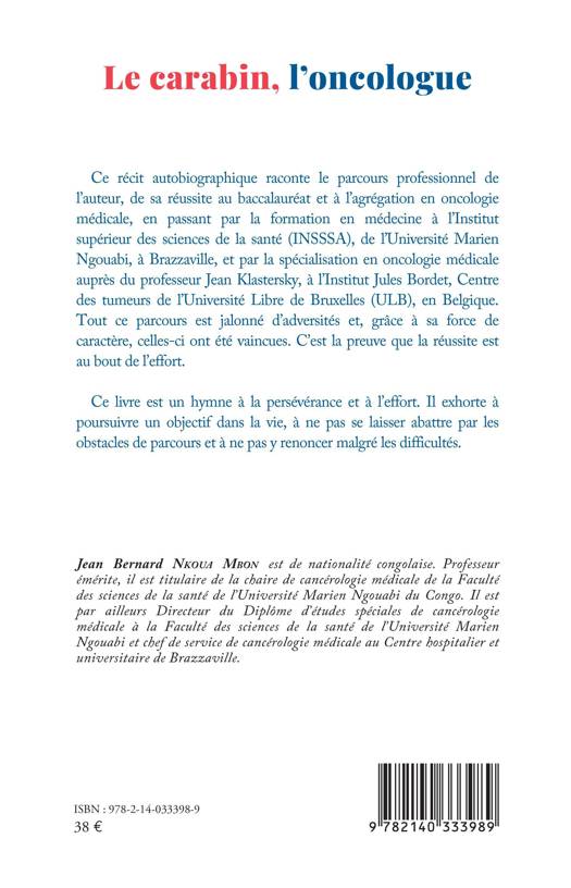 Ce récit autobiographique raconte le parcours professionnel de l'auteur, de sa réussite au baccalauréat et à l'agrégation en oncologie médicale, en passant par la formation en médecine à l'Institut supérieur des sciences de la santé (INSSSA), de l'Université Marien Ngouabi, à Brazzaville, et par la spécialisation en oncologie médicale auprès du professeur Jean Klastersky, à l'Institut Jules Bordet, Centre des tumeurs de l'Université Libre de Bruxelles (ULB), en Belgique. Tout ce parcours est jalonné d'adversités et, grâce à sa force de caractère, celles-ci ont été vaincues. C'est la preuve que la réussite est au bout de l'effort. Ce livre est un hymne à la persévérance et à l'effort. Il exhorte à poursuivre un objectif dans la vie, à ne pas se laisser abattre par les obstacles de parcours et à ne pas y renoncer malgré les difficultés.