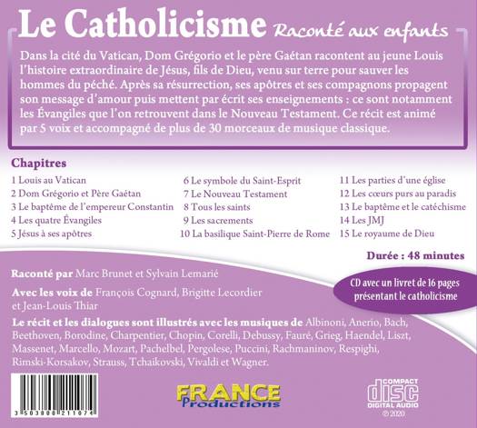 Dans la cité du Vatican, Dom Grégorio et le père Gaétan racontent au jeune Louis l'histoire extraordinaire de Jésus, fils de Dieu, venu sur terre pour sauver les hommes du péché. Après sa résurrection, ses apôtres et ses compagnons propagent son message d'amour puis mettent par écrit ses enseignements : ce sont notamment les Évangiles que l'on retrouvent dans le Nouveau Testament. Ce récit est animé par 5 voix et accompagné de plus de 30 morceaux de musique classique.