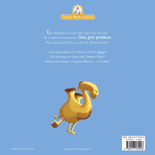 Attention, Chameau en approche ! Chaque matin, tous les animaux se mobilisent pour lui laisser le champ libre. Il faut tout enlever de son chemin, car il ne voit rien, mais alors rien du tout. Quand soudain il se dirige vers les montagnes, gros gros problemo. Une nouvelle histoire tendre et drôle de Mamie Poule.