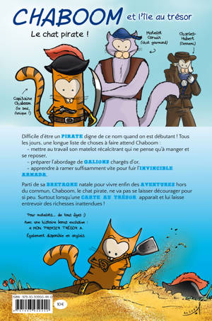 Difficile d´être un pirate digne de ce nom quand on est débutant ! Tous les jours, une longue liste de choses à faire attend Chaboom :. mettre au travail son matelot récalcitrant qui ne pense qu´à manger et se reposer,. préparer l´abordage de galions chargés d´or,. apprendre à ramer suffisamment vite pour fuir l´Invincible Armada.Parti de sa Bretagne natale pour vivre enfin des aventures hors du commun, Chaboom, le chat pirate, ne va pas se laisser décourager pour si peu. Surtout lorsqu´une carte au trésor apparaît et lui laisse entrevoir des richesses inattendues !