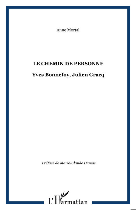 Cet essai se propose d'interroger le chemin, qui est un motif très présent dans la littérature et surtout la poésie contemporaine, et un motif fortement nourri de mythes mais son objet est plus précisément défini comme le " chemin de personne ". Le chemin de personne doit traduire cette ambiguïté fondamentale du chemin qui est une appréhension du monde, en même temps qu'un retour sur soi, sur le corps, et une fantasmagorie nourrie de littérature.