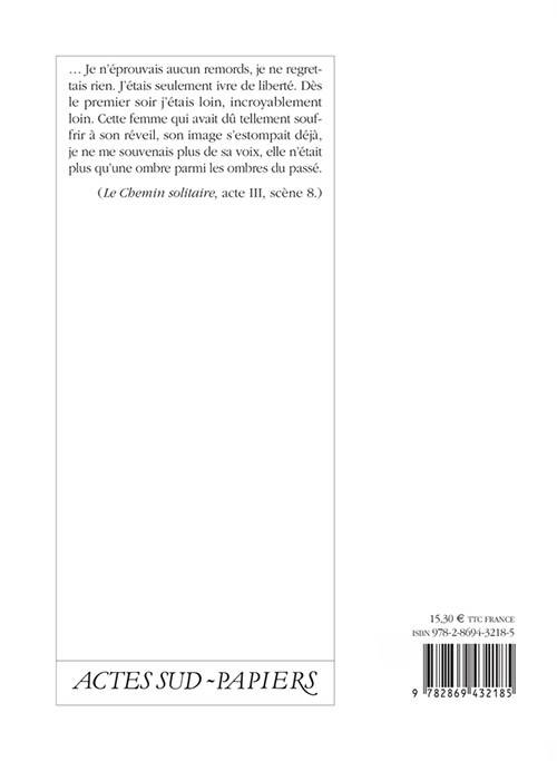 "Je n'éprouvais aucun remords, je ne regrettais rien. J'étais seulement ivre de liberté. Dès le premier soir j'étais loin, incroyablement loin. Cette femme qui avait dû tellement souffrir à son réveil, son image s'estompait déjà, je ne me souvenais plus de sa voix, elle n'était plus qu'une ombre parmi les ombres du passé."