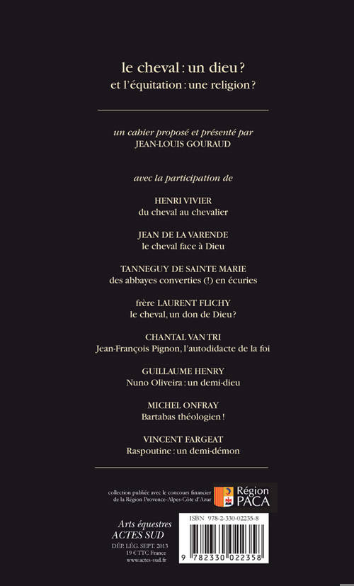 Pour certains, « le cheval est une preuve de l'existence de Dieu ». Cet ouvrage regroupant une introduction de Jean-Louis Gouraud ainsi que les contributions de sept spécialistes s'interroge à ce sujet.