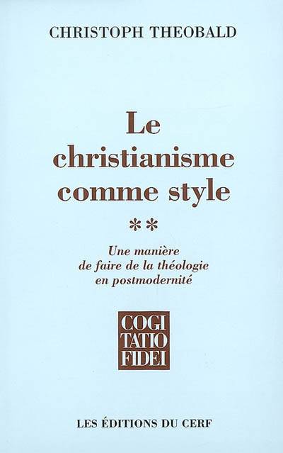 Le projet d'exprimer l'identité chrétienne en termes de " style " est déjà ancien ; Friedrich Schleiermacher et Hans Urs von Balthasar l'ont mené à bien, le premier selon une orientation herméneutique, le second dans le cadre d'une phénoménologie théologique. Le concept de " style " permet de penser la singularité de telle oeuvre, l'" allure " qui ne relève plus d'une comparaison classificatrice mais de la manifestation d'une unicité incomparable et d'une véritable innovation. " Tout style est la mise en forme des éléments du monde qui permettent d'orienter celui-ci vers une de ses parts essentielles " (Maurice Merleau-Ponty). Ainsi comprise, l'approche stylistique du christianisme évite de réduire celui-ci à son enseignement doctrinal mais permet d'honorer l'ensemble de la vie chrétienne comme une manière d'habiter le monde. Apparaît, en filigrane, le principe de concordance entre le contenu et la forme, si essentiel pour caractériser la qualité stylistique d'une oeuvre et facilement applicable à la question de la crédibilité de la foi chrétienne. Comme l'indique son sous-titre, l'ouvrage progresse simultanément sur deux versants : un diagnostic théologique du moment présent en rapport avec nos débats sur la modernité et la postmodernité, et, intimement liée à cette évolution, une réflexion épistémologique sur une manière de faire de la théologie. Après une Ouverture qui fait entendre l'ensemble de la " thématique " , la première partie est consacrée au diagnostic (I), la deuxième et la troisième à la manière de faire de la théologie, en lien avec la tradition spirituelle du christianisme (II) et appuyée sur la lecture des Écritures (III). Il s'agit là des deux versants, externe et interne, d'une même présence chrétienne dans notre histoire, visée par la terminologie du " style " : le christianisme comme style. Celui-ci trouve dans la dernière partie sa pleine explicitation (IV). -- The project to express the Christian identity in terms of 'style' is not a new one; Friedrich Schleiermacher and Hans Urs von Balthasar both succeeded, the first with a hermeneutic approach, the second in the context of theological phenomenology. The concept of 'style' permits us to think the uniqueness of an oeuvre; the 'allure' which does not emanate from a classifying comparison but from the manifestation of an incomparable unity and a veritable innovation. 'All style is an arrangement of elements of the world that allows us to orient them towards one of their essential parts' (Maurice Merleau-Ponty). In this sense, the stylistic approach to Christianity avoids reducing it to its doctrinal teaching, and permits us to honour the ensemble of Christian life as a way of living in the world. There appears in filigree the principle of concordance between contents and form, imperative to characterise the stylistic quality of a work and easily applicable to the question of the credibility of the Christian faith. As the sub-title indicates, this work advances simultaneously on two planes: a theological diagnostic of the present moment in relation with our debates on modernity and post modernity, and, intimately linked to that evolution, an epistemological reflection on a way of practicing theology. After an Overture which exposes the ensemble of the 'thematic', the first part is devoted to a diagnostic (I), the second and the third to a way of practicing theology linked to the spiritual tradition of Christianity (II) and based on the reading of the Scriptures (III). These are two planes, interior and exterior, of the same Christian presence in our history, referred to by the terminology of 'style': Christianity as a style, fully explained in the final part (IV).