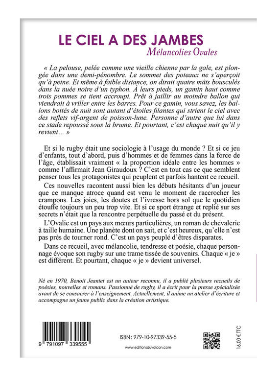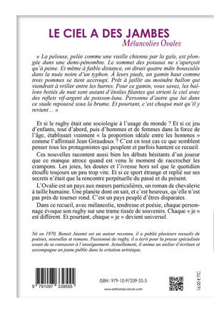Les souvenirs du rugby ennoblissent la mémoire de ceux qui l'ont pratiqué. « La pelouse, pelée comme une vieille chienne par la gale, est plongée dans une demi-pénombre. Le sommet des poteaux ne s'aperçoit qu'à peine. Et même à faible distance, on dirait quatre mâts bousculés dans la nuée noire d'un typhon. À leurs pieds, un gamin haut comme trois pommes se tient accroupi. Prêt à jaillir au moindre ballon qui viendrait à vriller entre les barres. Pour ce gamin, vous savez, les ballons bottés de nuit sont autant d'étoiles filantes qui strient le ciel avec des reflets vif-argent de poisson-lune. Personne d'autre que lui dans ce stade repoussé sous la brume. Et pourtant, c'est chaque nuit qu'il y revient... » Et si le rugby était une sociologie à l'usage du monde ? Et si ce jeu d'enfants, tout d'abord, puis d'hommes et de femmes dans la force de l'âge, établissait vraiment « la proportion idéale entre les hommes » comme l'affirmait Jean Giraudoux ? C'est en tout cas ce que semblent penser tous les protagonistes qui peuplent et parfois hantent ce recueil. Pour la plupart, il s'agit de pratiquants anonymes. Leurs histoires racontent aussi bien leurs débuts hésitants que ce manque atroce quand est venu le moment de raccrocher les crampons. Les joies, les doutes et l'ivresse hors sol que le quotidien étouffe toujours un peu trop vite. Et si ce sport étrange et replié sur ses secrets n'était que la rencontre perpétuelle du passé et du présent ? L'occasion, à chaque fois renouvelée, pour la mémoire et les souvenirs de s'ennoblir. L'Ovalie est un pays aux moeurs particulières, un roman de chevalerie à taille humaine. Une planète dont on sait, et c'est heureux, qu'elle n'est pas près de tourner rond. C'est un pays peuplé d'êtres disparates, Avec mélancolie, tendresse et poésie, chaque personnage évoque son rugby sur une trame tissée de souvenirs. Chaque « je » est différent. Et pourtant, chaque « je » devient universel Un style à la fois « simple » et très littéraire L'évocation du rugby des petits clubs, rural ou citadin, celui, plus anonyme, du rugby amateur Une galerie de portraits ancrée dans le quotidien Des séquences qui oscillent entre drames intimes et situations plus picaresques Une autre lecture d'un sport souvent présenté sous un jour trop folklorisant