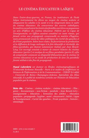 Dans l'entre-deux-guerres, en France, les instituteurs de l'école laïque instruisaient les élèves au moyen du cinéma scolaire et éduquaient les adultes à la santé et à la citoyenneté dans le cadre du cinéma éducateur. Cet ouvrage consiste à mener de concert histoire du cinéma éducateur et analyse de ses films-paraboles, afin de comprendre comment un dispositif d'éducation par le cinéma et un mode de production de sens furent utilisés à des fins de propagande.
