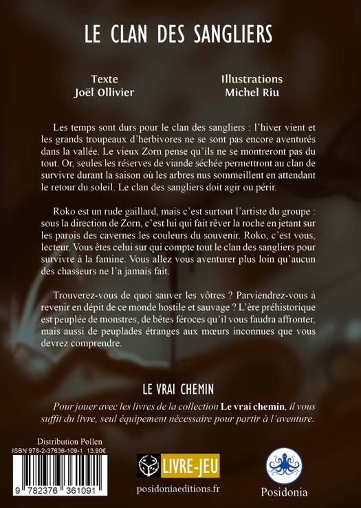 Les temps sont durs pour le clan des sangliers : l’hiver vient et les grands troupeaux d’herbivores ne se sont pas encore aventurés dans la vallée. Le vieux Zorn pense qu’ils ne se montreront pas du tout. Or, seules les réserves de viande séchée permettront au clan de survivre durant la saison où les arbres nus sommeillent en attendant le retour du soleil. Le clan des sangliers doit agir ou périr.<br /><br /> Roko est un rude gaillard, mais c’est surtout l’artiste du groupe : sous la direction de Zorn, c’est lui qui fait rêver la roche en jetant sur les parois des cavernes les couleurs du souvenir. Roko, c’est vous, lecteur. Vous êtes celui sur qui compte tout le clan des sangliers pour survivre à la famine. Vous allez vous aventurer plus loin qu’aucun des chasseurs ne l’a jamais fait.<br /><br /> Trouverez-vous de quoi sauver les vôtres ? Parviendrez-vous à revenir en dépit de ce monde hostile et sauvage ?