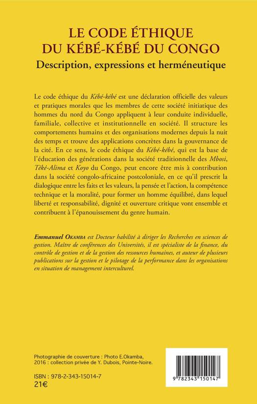 Le code éthique du Kébé-kébé est une déclaration officielle des valeurs et pratiques morales que les membres de cette société initiatique des hommes du nord du Congo appliquent à leur conduite individuelle, familiale, collective et institutionnelle en société. Il structure les comportements humains, ce code éthique est la base de l'éducation traditionnelle des Mbosi, Téké-Alima et Koyo du Congo.