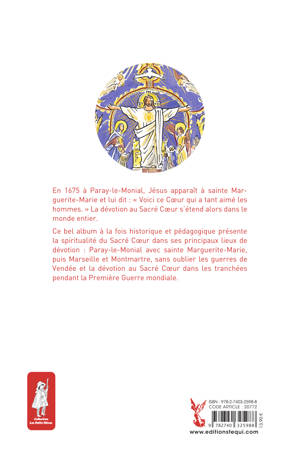 Il y a presque 350 ans, le 13 juin 1675, à Paray-le-Monial, Jésus apparaît à sainte Marguerite-Marie et lui montre son Cœur entouré de feu et cerclé de la couronne d’épines en lui disant : « Voici ce Cœur qui a tant aimé les hommes. J’ai une soif ardente d’être honoré et aimé (des hommes) dans le Très Saint Sacrement. » La dévotion au Sacré Cœur s’étend alors dans le monde entier : une fête lui est consacrée par le pape Pie IX en 1856. Des églises dédiées au Sacré Cœur sont construites : d’abord à Marseille, puis à Montmartre. Le Sacré Cœur est l’emblème des guerres de Vendée pour la liberté religieuse et on le voit circuler en cachette dans les tranchées de 1914-1918. Un bel album sur cette spiritualité qui s’appuie sur les promesses de Jésus : « Je leur donnerai toutes les grâces nécessaires… Je mettrai la paix dans leurs familles… Je les consolerai de toutes leurs peines… »