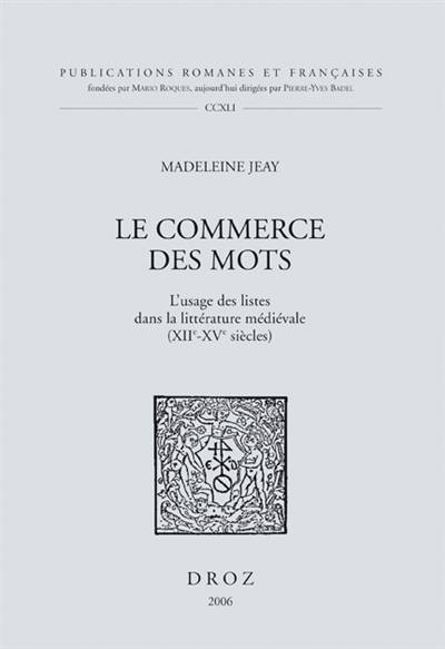 Observation de la pratique littéraire de la liste du XIIe siècle au début du XVIe siècle dans les oeuvres de Machaut, Froissart, Deschamps, Villon par exemple, qui montre que celle-ci est associée à la vision que le poète a de lui-même : maître des mots et de leurs infinies possibilités et conscient des limites qu'il se pose.