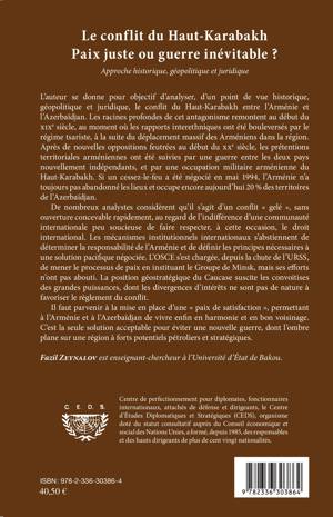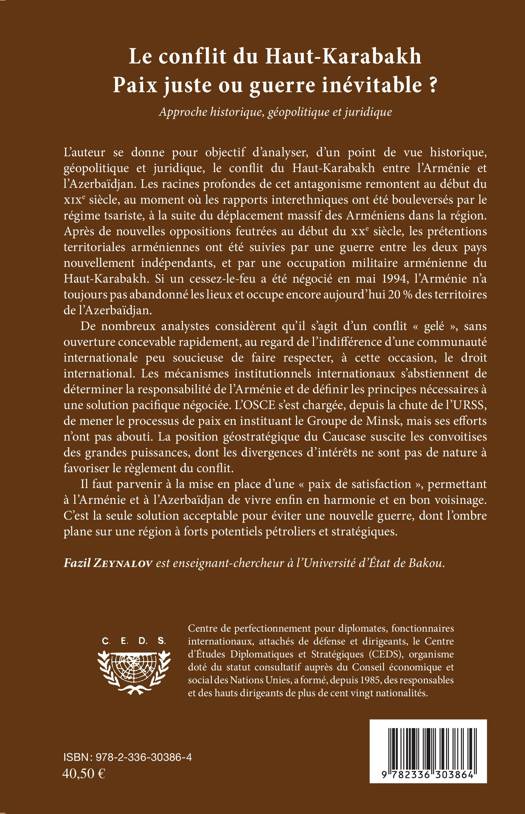L'auteur se donne pour objectif d'analyser, d'un point de vue historique, géopolitique et juridique, le conflit, actuellement "gelé", du Haut-Karabakh entre l'Arménie et l'Azerbaïdjan. Etant donné son caractère interétatique, les intérêts des grandes puissances et des Etats voisins, liés à la position géostratégique du Caucase et aux ressources naturelles de la mer Caspienne, ne sont pas de nature à favoriser le règlement du conflit. La mise en place d'une "paix de satisfaction", permettant à l'Arménie et à l'Azerbaïdjan de vivre en bon voisinage, constitue la seule solution acceptable dans cette région à fort potentiel pétrolier et stratégique.