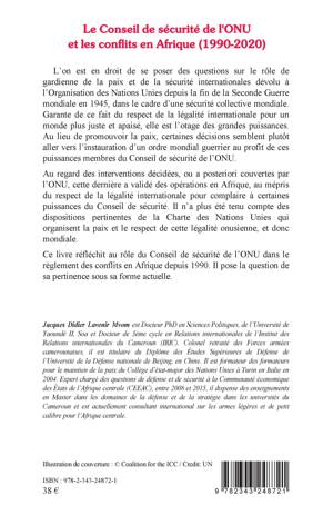 L'on est en droit de se poser des questions sur le rôle de gardienne de la paix et de la sécurité internationales dévolu à l'Organisation des Nations Unies depuis la fin de la Seconde Guerre mondiale en 1945, dans le cadre d'une sécurité collective mondiale. Au regard des interventions décidées, ou a posteriori couvertes par l'ONU, cette dernière a validé des opérations en Afrique, au mépris du respect de la légalité internationale pour complaire à certaines puissances du Conseil de sécurité. Il n'a plus été tenu compte de dispositions pertinentes de la Charte des Nations Unies qui organisent la paix et le respect de cette légalité onusienne, et donc mondiale. Ce livre réfléchit au rôle du Conseil de sécurité de l'ONU dans le règlement des conflits en Afrique depuis 1990. Il pose la question de sa pertinence sous sa forme actuelle.
