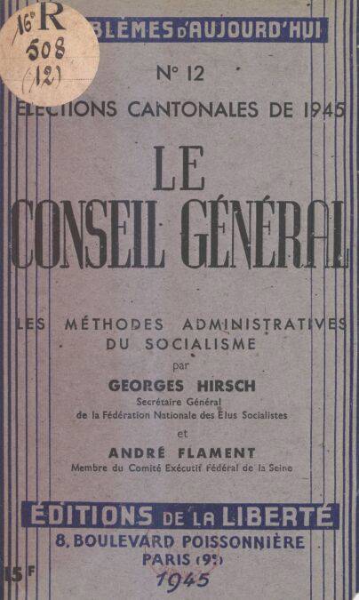 Le Conseil Général : élections cantonales de 1945 E-BOOK
