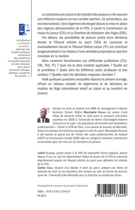 Le contentieux du statut et du transfert des joueurs a souvent une influence majeure sur leur carrière. La mise en place des organes décisionnaires de la FIFA, les possibilités de recours contre leurs décisions ont contribué à la création d’une jurisprudence sportive mondiale. Comment fonctionnent ces différentes juridictions ? Quel est le droit matériel applicable ? Quelles sont les décisions majeures récentes ? Cet ouvrage offre un tableau complet de règlements et de décisions en matière de litige international relatif au statut et au transfert des joueurs.