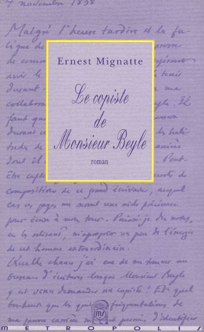 Le journal imaginaire du copiste de monsieur Beyle pendant la rédaction de La chartreuse de Parme nous fait pénétrer dans l'univers de Stendhal et des cercles littéraires du XIXe siècle vus à travers le regard d'un "nègre".