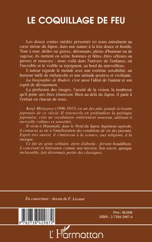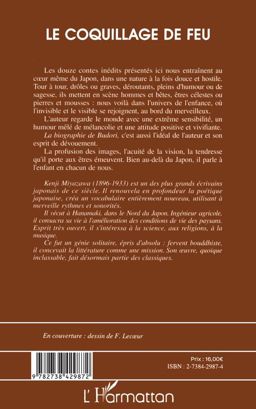 Les douze contes inédits présentés ici nous entraînent au cœur même du Japon, dans une nature à la fois douce et hostile. Tour à tour, drôles ou graves, déroutants, pleins d’humour ou de sagesse, ils mettent en scène hommes et bêtes, êtres célestes ou pierres et mousses : nous voilà dans l’univers de l’enfance, où l’invisible et le visible se rejoignent, au bord du merveilleux. L’auteur regarde le monde avec une extrême sensibilité, un humour mêlé de mélancolie et une attitude positive et vivifiante. La biographie de Budori, c’est aussi l’idéal de l’auteur et son esprit de dévouement. La profusion des images, l’acuité de la vision, la tendresse qu’il porte aux êtres émeuvent. Bien au-delà du Japon, il parle à l’enfant en chacun de nous. Kenji Miyazawa (1896-1933) est un des plus grands écrivains japonais de ce siècle. Il renouvela en profondeur la poétique japonaise, créa un vocabulaire entièrement nouveau, utilisant à merveille rythmes et sonorités. Il vécut à Hanamaki, dans le Nord du Japon. Ingénieur agronome, il consacra sa vie à l’amélioration des conditions de vie des paysans. Esprit très ouvert, il s’intéressa à la science, aux religions, à la musique. Ce fut un génie solitaire, épris d'absolu : fervent bouddhiste, il concevait la littérature comme une mission. Son œuvre, quoique inclassable, fait désormais partie des classiques.