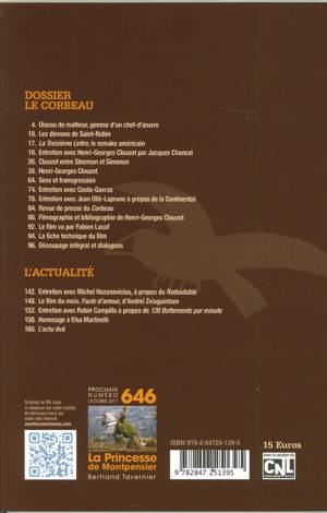 Le Corbeau, second film de Clouzot est de l'avis de tous l'un des très grands films de l'Histoire du cinéma. Réalisé en 1943, le film dénonce les auteurs de lettres anonymes et s'adresse donc directement à l'occupant, mais c'est pourtant à la Libération que Clouzot dut rendre des comptes tant son film dérangeait de par la description très pessimiste que le cinéaste faisait de ses semblables. Modèle indépassable d'un certain cinéma policier, le film possède de nombreuses scènes d'anthologie. Un très important dossier est joint au découpage, qui revient sur l'un des très grands cinéastes français en cette année 2017 où il est célébré à travers tout le pays.