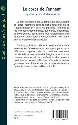 Le lent avènement de la démocratie en Occident se place volontiers sous le signe fallacieux de la désanimalisation de la vie politique - comme si les violences interhumaines, guerrières, prédatrices, exterminatrices, découlaient tout naturellement des usages en cours dans le monde animal - un règne animal totalement fantasmé, ici. Ce livre, publié en 1998 et ici réédité s'attache à analyser les faux-semblants de cette si persistante référence négative de la politique moderne occidentale à une animalité imaginaire - tout se passant comme si la pacification des moeurs politiques ne pouvait s'effectuer qu'au prix de la plus grossière des diffamations, de la plus véhémente des abjurations de la condition animale.