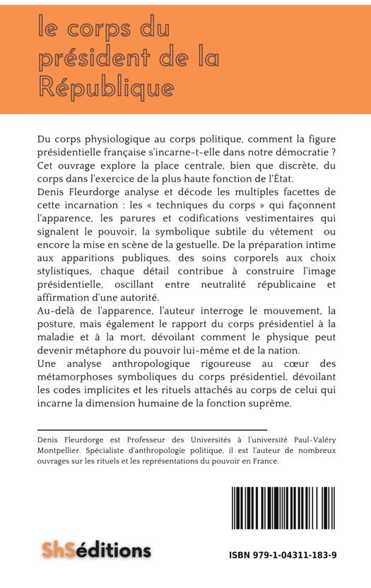 Denis Fleurdorge analyse et décode les multiples facettes de cette incarnation : les « techniques du corps » qui façonnent l'apparence, les parures et codifications vestimentaires qui signalent le pouvoir, la symbolique subtile du vêtement ou encore la mise en scène de la gestuelle. De la préparation intime aux apparitions publiques, des soins corporels aux choix stylistiques, chaque détail contribue à construire l'image présidentielle, oscillant entre neutralité républicaine et affirmation d'une autorité.