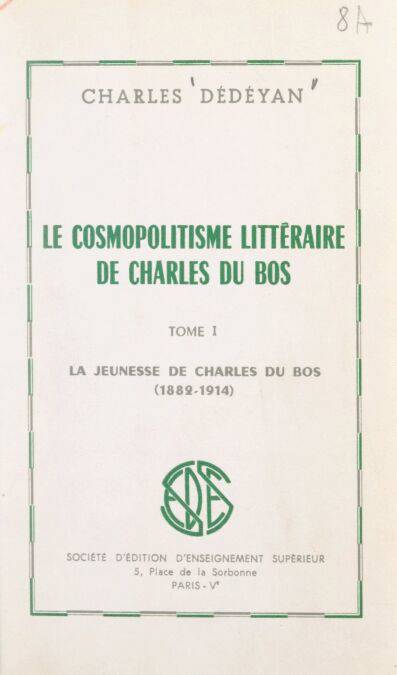 Le cosmopolitisme littéraire de Charles du Bos (1). La jeunesse de Charles du Bos, 1882-1914 E-BOOK