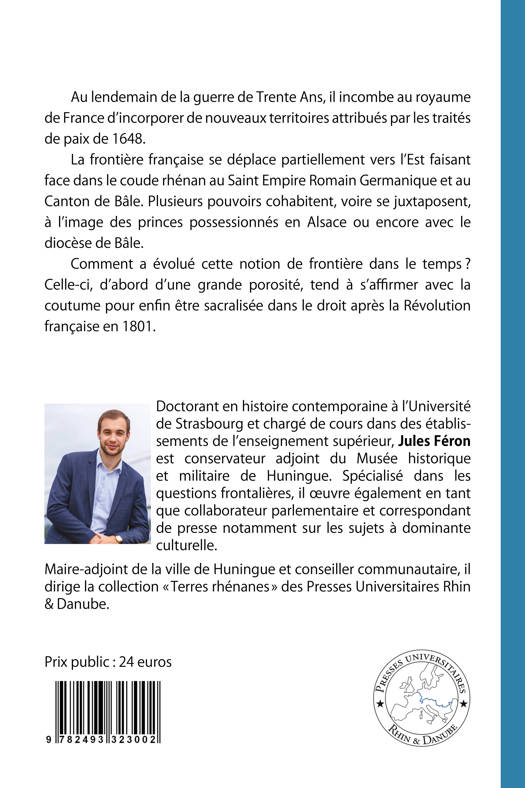 Au lendemain de la guerre de Trente Ans, il incombe au royaume de France d’incorporer de nouveaux territoires attribués par les traités de paix de 1648. La frontière française se déplace partiellement vers l’Est, faisant ainsi face dans le coude rhénan au Saint Empire Romain Germanique et au Canton de Bâle. Plusieurs pouvoirs cohabitent, voire se juxtaposent, à l’image des princes possessionnés en Alsace ou encore avec le diocèse de Bâle. Comment a évolué cette notion de frontière dans le temps ? Celle-ci, d’abord d’une grande porosité, tend à s’affirmer avec la coutume pour enfin être sacralisée dans le droit après la Révolution française en 1801.