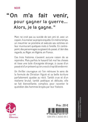 Marc ne croit pas au suicide de son ami et, avec un copain, il va mener sa propre enquête. En même temps, un meurtrier se promène et exécute ses victimes en leur murmurant quelques mots à l’oreille. En contrepoint, des personnages surgissent du passé, à l’abri des regards, au Niger, en Algérie, en France.