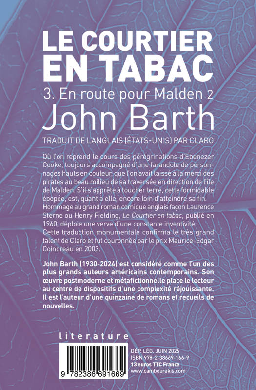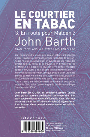 Où l'on reprend le cours des pérégrinations d'Ebenezer Cooke, toujours accompagné d'une farandole de personnages hauts en couleur, que l'on avait laissé à la merci des pirates au beau milieu de sa traversée en direction de l'île de Malden. S'il s'apprête à toucher terre, cette formidable épopée, est, quant à elle, encore loin d'atteindre sa fin. Hommage au grand roman comique anglais façon Laurence Sterne ou Henry Fielding, "Le Courtier en tabac", publié en 1960, déploie une verve d'une constante inventivité. Cette traduction monumentale confirma le très grand talent de Claro et fut couronnée par le prix Maurice-Edgar Coindreau en 2003.