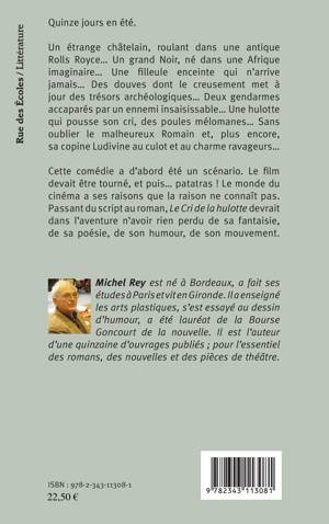 Quinze jours en été. Un étrange châtelain, roulant dans une antique Rolls Royce... Un grand Noir, né dans une Afrique imaginaire... Une filleule enceinte qui n'arrive jamais... Des douves dont le creusement met à jour des trésors archéologiques... Deux gendarmes accaparés par un ennemi insaisissable... Une hulotte qui pousse son cri, des poules mélomanes... Sans oublier le malheureux Romain et sa copine Ludivine au culot et au charme ravageurs... Passant du script au roman, Michel Rey nous embarque dans une aventure plein de fantaisie, de poésie et d'humour.