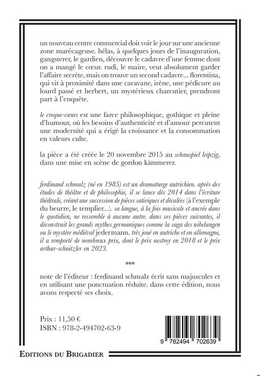 le croque-cœurs est une farce philosophique, gothique et pleine d'humour, où les besoins d'authenticité et d'amour percutent une modernité qui a érigé la croissance et la consommation en valeurs culte.
