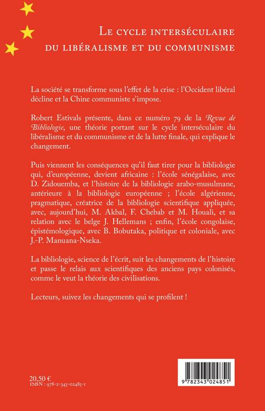 La société se transforme sous l'effet de la crise: l'Occident libéral décline et la Chine communiste s'impose. Ce numéro présente une théorie portant sur le cycle interséculaire du libéralisme et du communisme et de la lutte finale, qui explique le changement. Puis viennent les conséquences qu'il faut tirer pour la bibliologie qui, d'européenne, devient africaine.