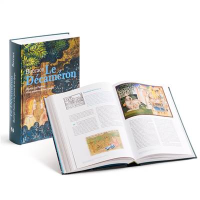 Une fresque fascinante de plus de cinq cents ouvres d'art en couleurs vient éclairer cette émouvante comédie humaine et amoureuse : les illustrations ornant les premières éditions de l'ouvrage, les dessins -tout récemment authentifiés- à la plume et à l'aquarelle de Boccace lui-même, les magnifiques miniatures du Manuscrit du Maître de la Cité des Dames, conservé au Vatican, et du Manuscrit Ceffini, conservé à la Bibliothèque nationale de France, les scènes somptueuses réalisées sur des coffres de mariages et des plateaux d'accouchée.