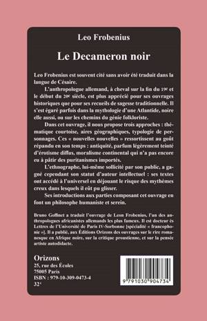 Leo Frobenius est souvent cité sans avoir été traduit dans la langue de Césaire. L’anthropologue allemand, à cheval sur la fin du 19e et le début du 20e siècle, est plus apprécié pour ses ouvrages historiques que pour ses recueils de sagesse traditionnelle. Il s’est égaré parfois dans la mythologie d’une Atlantide, noire elle aussi, ou sur les chemins du génie folkloriste. Dans cet ouvrage, il nous propose trois approches : thématique courtoise, aires géographiques, typologie de personnages. Ces « nouvelles nouvelles » ressortissent au goût répandu en son temps : antiquité, parfum légèrement teinté d’érotisme diffus, moralisme continental qui n’a pas encore eu à pâtir des puritanismes importés. L’ethnographe, lui-même sollicité par son public, a gagné cependant son statut d’auteur intellectuel : ses textes ont accédé à l’universel en déjouant le risque des mythèmes creux dans lesquels il eût pu glisser. Ses introductions aux parties composant cet ouvrage en font un philosophe humaniste et serein.