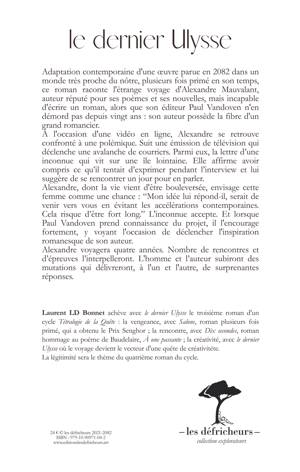 Adaptation contemporaine d'une œuvre parue en 2082 dans un monde très proche du nôtre, plusieurs fois primé en son temps, ce roman raconte l'étrange voyage d'Alexandre Mauvalant, auteur réputé pour ses poèmes et ses nouvelles, mais incapable d'écrire un roman, alors que son éditeur Paul Vandoven n'en démord pas depuis vingt ans : son auteur possède la fibre d'un grand romancier. À l'occasion d'une vidéo en ligne, Alexandre se retrouve confronté à une polémique. Suit une émission de télévision qui déclenche une avalanche de courriers. Parmi eux, la lettre d’une inconnue qui vit sur une île lointaine. Elle affirme avoir compris ce qu’il tentait d’exprimer pendant l’interview et lui suggère de se rencontrer un jour pour en parler. Alexandre, dont la vie vient d'être bouleversée, envisage cette femme comme une chance : “Mon idée lui répond-il, serait de venir vers vous en évitant les accélérations contemporaines. Cela risque d’être fort long.” L'inconnue accepte. Et lorsque Paul Vandoven prend connaissance du projet, il l'encourage fortement, y voyant l'occasion de déclencher l'inspiration romanesque de son auteur. Alexandre voyagera quatre années. Nombre de rencontres et d’épreuves l’interpelleront. L'homme et l’auteur subiront des mutations qui délivreront, à l'un et l'autre, de surprenantes réponses.