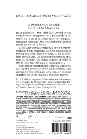Sortie au cinéma le 6 février 2019 du «Dernier Vide-Grenier de Claire Darling», adaptation du roman de Lynda Rutledge par Julie Bertuccelli, avec Catherine Deneuve et Chiara Mastroianni dans les rôles principaux.