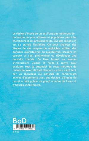 Le design d'étude de cas est l'une des méthodes de recherche les plus utilisées et populaires parmi les chercheurs et les professionnels. Une des raisons en est sa grande flexibilité. On peut analyser des études de cas uniques ou multiples, utiliser des données quantitatives ou qualitatives, prendre en compte un seul phénomène ou développer une nouvelle théorie. Ce livre fournit un manuel d'instructions unique et facile à suivre pour exploiter tout le potentiel de cette méthode de recherche. Avec Michael Neubert, ce livre a été écrit par un chercheur qui possède de nombreuses années d'expérience avec des designs d'études de cas et a déjà publié un grand nombre de livres et d'articles scientifiques.