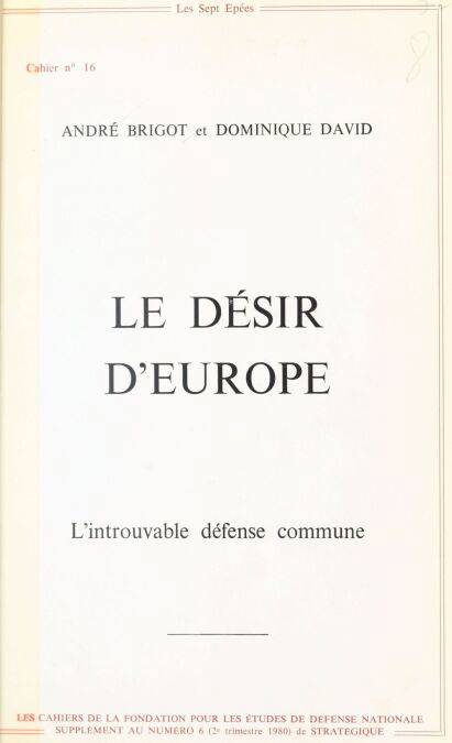 La défense de l’Europe occidentale et, plus généralement, la sécurité européenne, préoccupent de plus en plus vivement nos contemporains. La solution de ces problèmes est évidemment liée à la forme politique que les Européens sauront donner à leur territoire. Pour tenter de déterminer les objectifs accessibles en matière de défense et ceux qui restent hors de portée, il peut être intéressant d’étudier, dans une optique stratégique, les ressources économiques et militaires actuelles de la future Europe. C’est pourquoi la F.E.D.N. a voulu que deux études soient menées sur ce sujet, avec des approches et des sensibilités différentes. Elle en présente simultanément les résultats dans ses cahiers n° 15 et 16. Le cahier n° 15 : « Le deuxième pilier. Données et réflexions sur la sécurité européenne » est dû à Jean-Paul Pigasse, journaliste (« Les Échos »), licencié en droit, diplômé de sciences politiques, vice-président du C.E.S.T.E. (Cercle d’études de stratégie totale), directeur de « Défense et sécurité » (Centre de recherches sur les problèmes stratégiques et militaires), qui a publié de nombreux articles dans les revues « Stratégie », « Défense nationale », « Politique étrangère ». Le cahier n° 16 : « Le désir d’Europe. L’introuvable défense commune », est l’œuvre de deux auteurs : André Brigot, titulaire d’une maîtrise ès lettres, diplômé de l’Institut d’Études Politiques de Paris, enseigne les sciences économiques et sociales. Dominique David est licencié en histoire, diplômé d’études supérieures de droit public, diplômé de l’Institut d’Études Politiques de Paris. Tous deux sont attachés de recherches au Centre d’Études Politiques de Défense (C.E.P.O.D.E.) de l’Université Panthéon Sorbonne (Paris I).