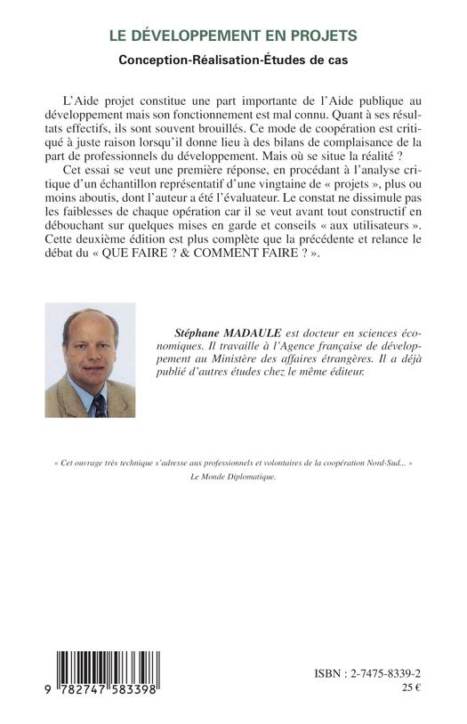 L'Aide projet constitue une part importante de l'Aide publique au développement mais son fonctionnement est mal connu. Quant à ses résultats effectifs, ils sont souvent brouillés. Cet essai se veut une première réponse, en procédant à l'analyse critique d'un échantillon représentatif d'une vingtaine de "projets", plus ou moins aboutis, dont l'auteur a été l'évaluateur. Le constat ne dissimule pas les faiblesses de chaque opération car il se veut avant tout constructif. Cette deuxième édition est plus complète que la précédente et relance le débat du "QUE FAIRE ? & COMMENT FAIRE ?"