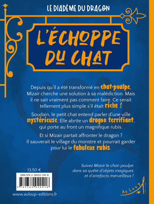 Depuis qu’il a été transformé en chat-poulpe, Mizair cherche une solution à sa malédiction. Mais il ne sait vraiment pas comment faire. Ce serait tellement plus simple s’il était riche !Soudain, le petit chat entend parler d’une ville mystérieuse. Elle abrite un dragon terrifiant, qui porte au front un magnifique rubis.Et si Mizair partait affronter le dragon ? Il sauverait le village du monstre et pourrait garder pour lui le fabuleux rubis.