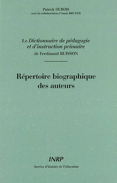 Le Dictionnaire publié sous la direction de F. Buisson en 1878-1887 et mis à jour en 1911 constitue un lieu de mémoire de la IIIe République dans le domaine scolaire. P. Dubois établit ici la biographie des nombreux collaborateurs à cette entreprise. Outre les articles destinés au Dictionnaire, les principales publications de ces auteurs sont signalées.