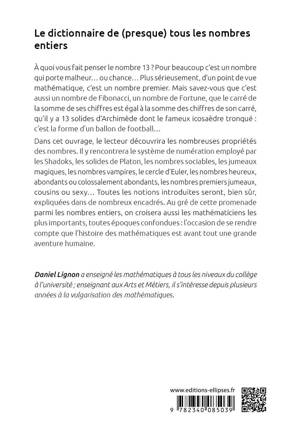 Au gré de cette promenade parmi les nombres entiers, on croisera aussi les mathématiciens les plus importants, toutes époques confondues : l’occasion de se rendre compte que l’histoire des mathématiques est avant tout une grande aventure humaine. En plus d’un glossaire, plusieurs index permettent de retrouver facilement la définition, le concept ou le mathématicien recherché.