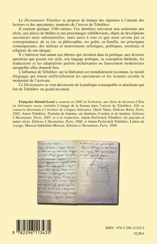 L'influence de Tchekhov sur la littérature est mondialement reconnue, la russité élégiaque qui émeut artificiellement les spectateurs et les lecteurs occulte la modernité de l'écrivain. Ce Dictionnaire se veut découverte de la poétique remarquable et attachante qui fait de Tchekhov un grand novateur. Contenant quelque 3160 entrées, il s'intéresse tout autant aux questions de poétiques et stylistiques qu'à la conception théâtrale et aux traductions et adaptations parfois archaïsante ou faussement modernistes auxquelles elles donnent lieu.