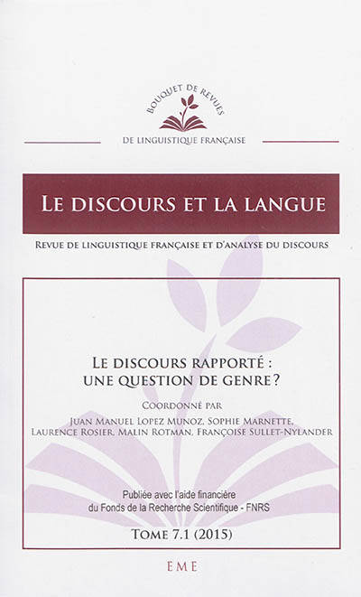 Au sommaire : Les discours littéraires à la lumière de l'articulation entre genre sexué et discours rapporté (Lopez Munoz, Marnette, Rosier, Sullet-Nylander, Rotman) / De la non-noblesse de plume ou de la construction de la "femme-auteur" dans le discours sur les écrivaines : un sexolecte allocentré ? (Baider) / The Play with Genre and Gender in Doris Lessing's novel The Golden Notebook (Elarem) / Paroles de femmes : quand dire, c'est se construire sexuellement (Colas-Blaise) / La croisée des discours dans le Quatuor algérien d'Assia Djebar (Barthelmebs)...