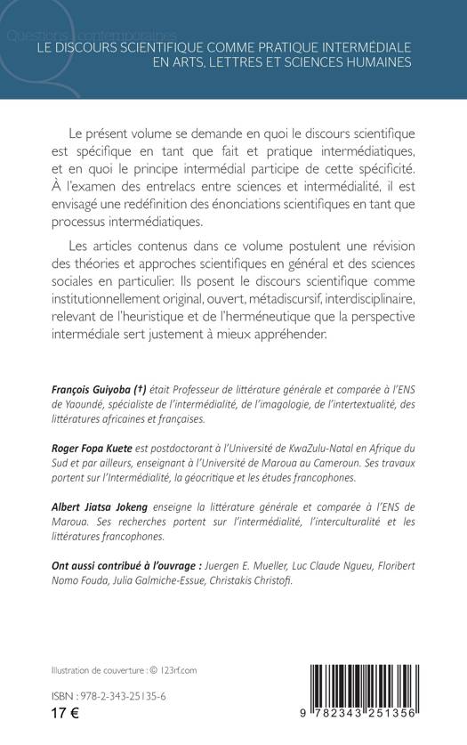 Le présent volume se demande en quoi le discours scientifique est spécifique en tant que fait et pratique intermédiatiques, et en quoi le principe intermédial participe de cette spécificité. À l’examen des entrelacs entre sciences et intermédialité, il est envisagé une redéfinition des énonciations scientifiques en tant que processus intermédiatiques. Les articles contenus dans ce volume postulent une révision des théories et approches scienti ques en général et des sciences sociales en particulier. Ils posent le discours scienti que comme institutionnellement original, ouvert, métadiscursif, interdisciplinaire, relevant de l’heuristique et de l’herméneutique que la perspective intermédiale sert justement à mieux appréhender.