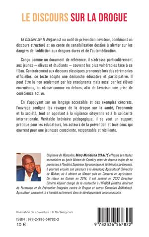 Le discours sur la drogue est un outil de prévention novateur, combinant un discours structuré et un conte de sensibilisation destiné à alerter sur les dangers de l'addiction aux drogues dures et de l'automédication. Conçu comme un document de référence, il s'adresse particulièrement aux jeunes - élèves et étudiants - souvent les plus vulnérables face à ce fléau. Contrairement aux discours classiques prononcés lors des cérémonies officielles, ce texte adopte une démarche éducative et participative. Il peut être lu non seulement par les enseignants mais aussi par les élèves eux-mêmes, en classe comme en dehors, afin de favoriser une prise de conscience active. En s'appuyant sur un langage accessible et des exemples concrets, l'ouvrage souligne les ravages de la drogue sur la santé, l'économie et la société, tout en appelant à la vigilance citoyenne et à la solidarité internationale. Véritable bréviaire pédagogique, il se veut un support pratique pour les éducateurs, les acteurs de la prévention et tous ceux qui oeuvrent pour une jeunesse consciente, responsable et résiliente.