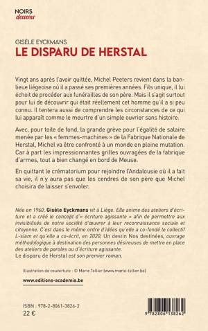Vingt ans après l'avoir quittée, Michel Peeters revient dans la banlieue liégeoise où il a passé ses premières années. Fils unique, il lui échoit de procéder aux funérailles de son père. Mais il s'agit surtout pour lui de découvrir qui était réellement cet homme qu'il a si peu connu. Il tentera aussi de comprendre les circonstances de ce qui lui apparaît comme le meurtre d'un simple ouvrier sans histoire. Avec, pour toile de fond, la grande grève pour l'égalité de salaire menée par les femmes-machines de la Fabrique Nationale de Herstal, Michel va être confronté à un monde en pleine mutation. Car à part les impressionnantes grilles ouvragées de la fabrique d'armes, tout a bien changé en bord de Meuse. En quittant le crématorium pour rejoindre l'Andalousie où il a fait sa vie, il n'y aura pas que les cendres de son père que Michel choisira de laisser s'envoler.