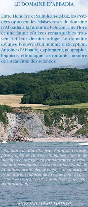 Entre Hendaye et Saint-Jean-de-Luz, les Pyrénées opposent les falaises roses du domaine d'Abbadia à la fureur de l'Océan. Une flore et une faune côtières remarquables trouvent ici leur dernier refuge. Le domaine est aussi l'oeuvre d'un homme d'exception, Antoine d'Abbadie, explorateur, géographe, linguiste, ethnologue, astronome, membre de l'Académie des sciences.