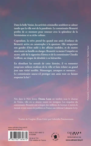 Dans la belle Venise, les activités criminelles semblent se calmer tandis que la ville sort de la pandémie. Le commissaire Brunetti profite de ce moment pour renouer avec la splendeur de la Sérénissime et sa riche culture. Cependant, la trêve prend fin quand une amie d’enfance de Brunetti arrive en catastrophe à la questure. Elle soupçonne son gendre d’être mêlé à des affaires sordides, et de mettre ainsi toute sa famille en danger. Brunetti va mener l’enquête en secret, aidé de la signorina Elettra et de la commissaire Claudia Griffoni, au risque de désobéir à sa hiérarchie. En démêlant les noeuds de cette histoire, il va remonter jusqu’aux milieux mafieux de la ville et faire éclater au grand jour une vérité terrible. Mensonges, arnaques et menaces… Le commissaire saura-t-il protéger son amie tout en faisant respecter la loi ?