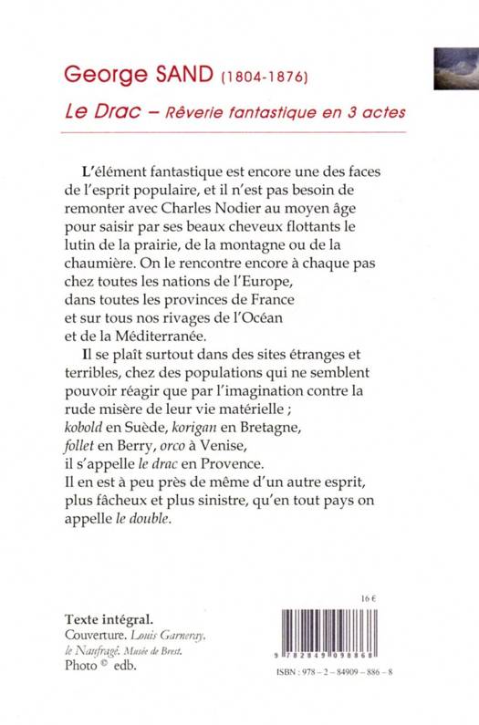 Il se plaît surtout dans des sites étranges et terribles, chez des populations qui ne semblent pouvoir réagir que par l'imagination contre la rude misère de leur vie matérielle ; kobold en Suède, korigan en Bretagne, follet en Berry, orco à Venise, il s'appelle le drac en Provence. Il en est à peu près de même d'un autre esprit, plus fâcheux et plus sinistre, qu'en tout pays on appelle le double.