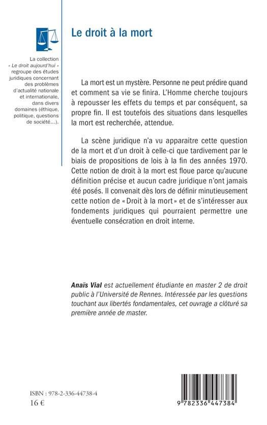 La mort est un mystère. Personne ne peut prédire quand et comment sa vie se finira. L’Homme cherche toujours à repousser les effets du temps et par conséquent, sa propre fin. Il est toutefois des situations dans lesquelles la mort est recherchée, attendue. La scène juridique n’a vu apparaitre cette question de la mort et d’un droit à celle-ci que tardivement par le biais de propositions de lois à la fin des années 1970. Cette notion de droit à la mort est floue parce qu’aucune définition précise et aucun cadre juridique n’ont jamais été posés. Il convenait dès lors de définir minutieusement cette notion de « Droit à la mort » et de s’intéresser aux fondements juridiques qui pourraient permettre une éventuelle consécration en droit interne.