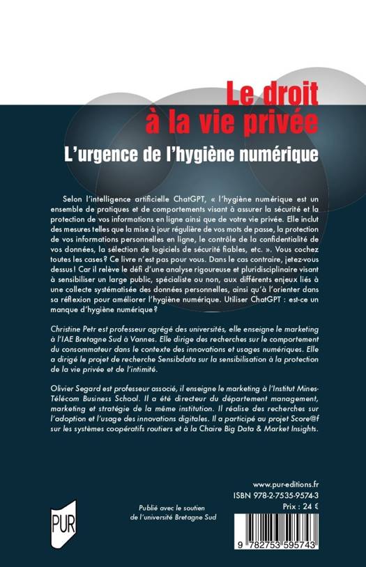Selon l’intelligence artificielle ChatGPT, « l’hygiène numérique est un ensemble de pratiques et de comportements visant à assurer la sécurité et la protection de vos informations en ligne ainsi que de votre vie privée. Elle inclut des mesures telles que la mise à jour régulière de vos mots de passe, la protection de vos informations personnelles en ligne, le contrôle de la confidentialité de vos données, la sélection de logiciels de sécurité fiables, etc.». Vous cochez toutes les cases ? Ce livre n’est pas pour vous. Dans le cas contraire, jetez-vous dessus ! Car il relève le défi d’une analyse rigoureuse et pluridisciplinaire visant à sensibiliser un large public, spécialiste ou non, aux différents enjeux liés à une collecte systématisée des données personnelles, ainsi qu’à l’orienter dans sa réflexion pour améliorer l’hygiène numérique. Utiliser ChatGPT : est-ce un manque d’hygiène numérique ?